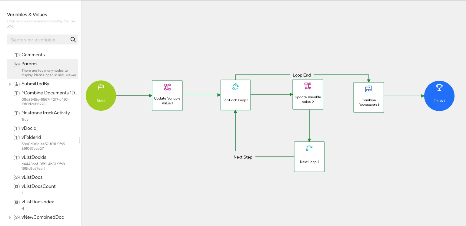 The workflow needs to combine these 2 selected documents and then create a new document. I did create a document workflow. When I run this workflow, in the XML I found that it has 2 documents in the Params variable. When I imported that XML, I found that the XML contained only one document.