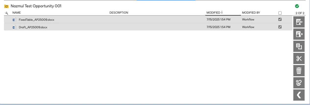 From here I select 2 documents, and there is also an action button on the right side that will trigger a workflow.