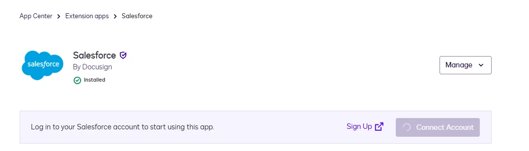 Unable to create Maestro with Salesforce. After installing Salesforce from App Center, we tried to add connection to salesforce. After adding the credentials it is not refreshing the page. A blank white page shows and it does not redirect back to Docusign. Tried multiple times and it is not connecting