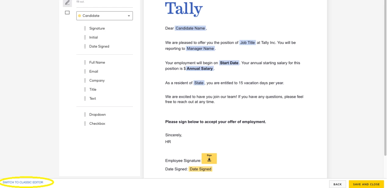 I have prepared some templates using the Word addin Docusign Template Assistant and I shared them with my colleagues through Docusign. These templates use conditional formulas and custom fillable fields.