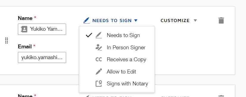 The first entry is for witness signing, which is a a different role and is not related and can be unchecked.