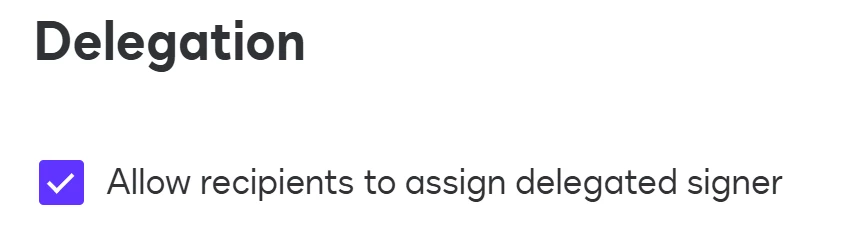 Delegated signing requires the recipient to be a Docusign account member. In contrast, an embedded recipient view is usually assigned to a captive recipient instead. A captive recipient, also known as an embedded recipient, is a person who can sign without a Docusign account. This is the opposite of a placeholder recipient outside of Docusign.