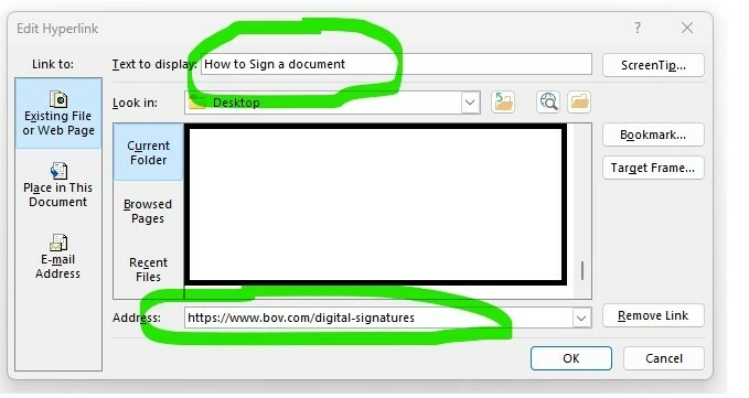 We tried to rename a hyperlink in Microsoft Word using the 'Text to display' field (as shown in the attached). After copying it to the DocuSign Message field, the recipient of the envelope was unable to open the link. It seems that modifying the 'Text to display' breaks the functionality of the hyperlink.