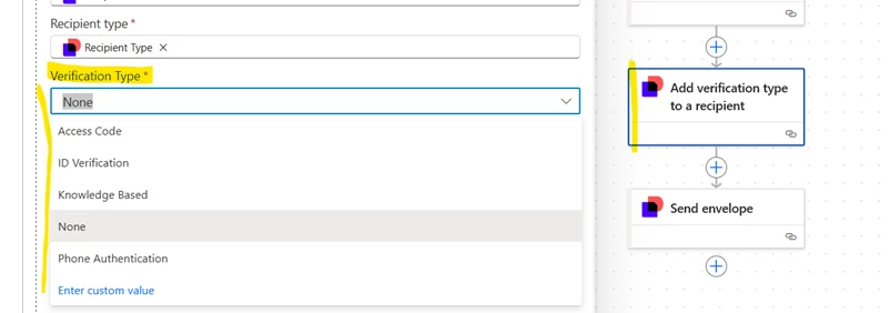 I would like to create an automated Powerautomate Signing-Workflow with DocuSign an create a qualified electronic signature (QES). Therefore a validation workflow is necessary. We use D-Trust (Bundesdruckerei) in Germany. I need to input the verification Type as a parameter. But I am not sure what to choose or how to correctly address / initiate this verification workflow exactely. Any expericence or idea how to solve this? Thanks! Uli