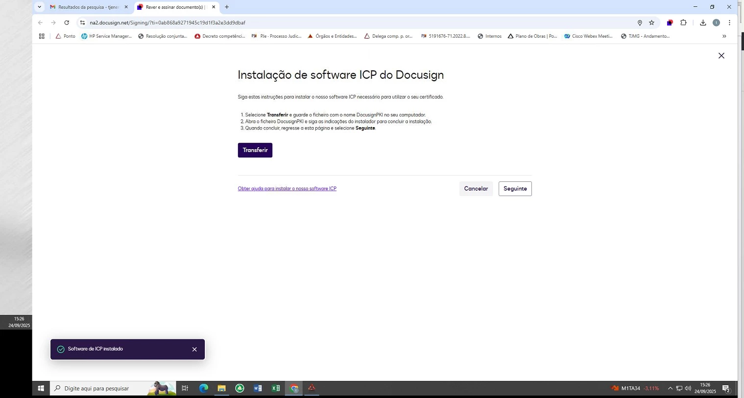 Good evening, Christopher Thank you for your reply, I am the recipient of the envelope. I went through the process of installing the browser extension and also the PKI Docusign application, I also tried the alternative method that is on the website at this link. https://support.docusign.com/s/articles/Metodo-alternativo-para-a-instalacao-do-PKI-DocuSign?language=pt_BR&rsc_301 . Even so, it claims that the ICP software is not installed.