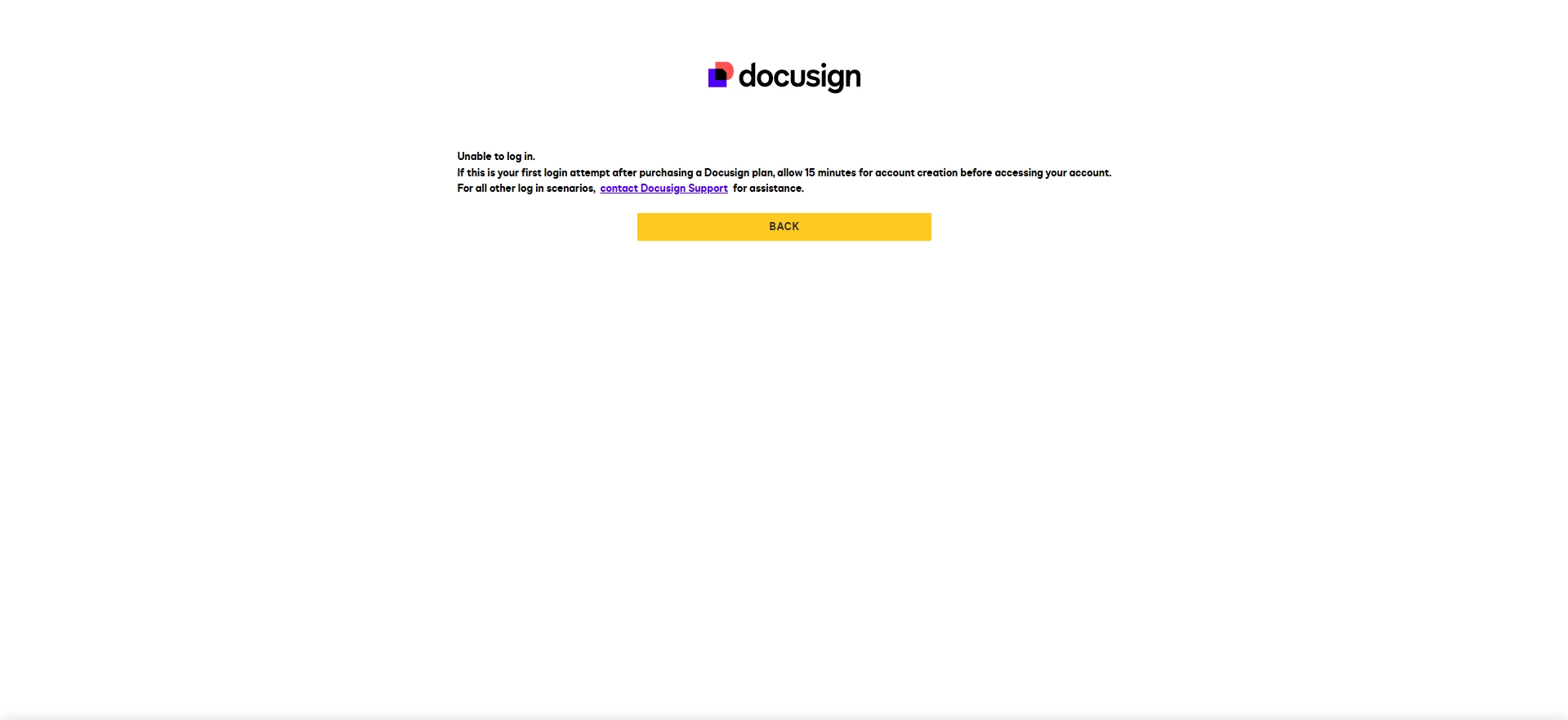 When I try to access DocuSign Support to request a reset, I'm unable to log in. It says "Unable to log in" — I believe this is because free developer accounts don’t have full support access.