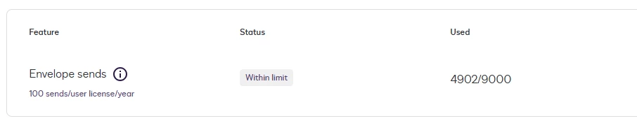 We bought E-signature Standard Licenses for 90 users. The usage shows we are within limit. But users are getting this Envelope Allowance exceeded error.