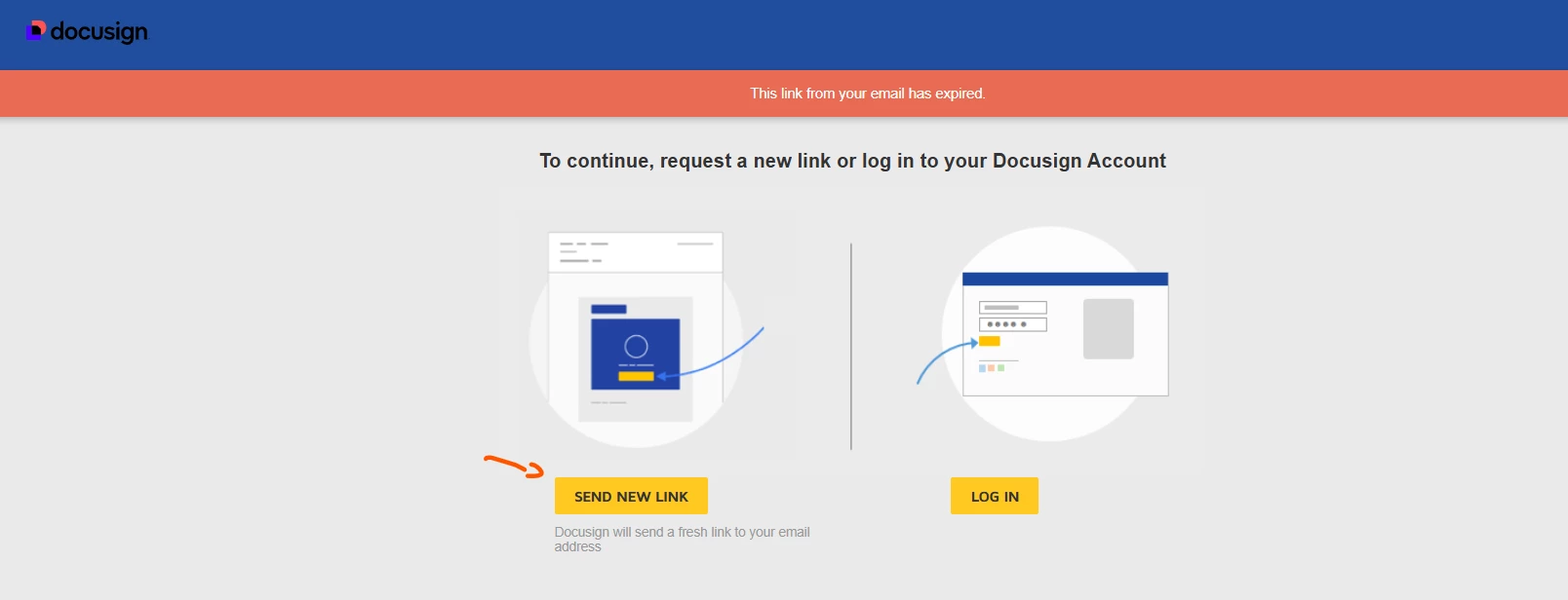 As a recipient, they should have an option to easily request a new signing link by clicking the expired link, which triggers Docusign to send a fresh access email automatically