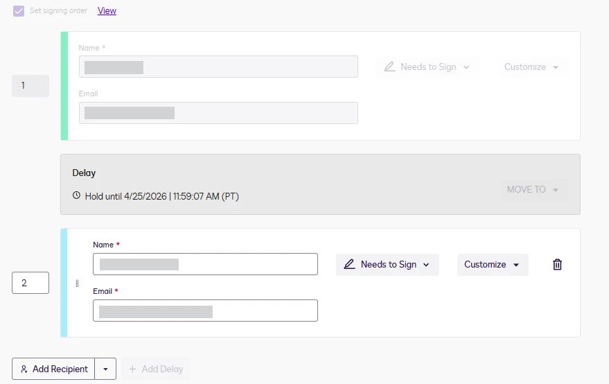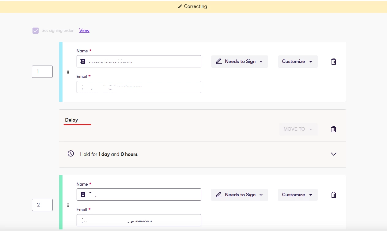 How do I clear a delay in a document that was sent for signature?