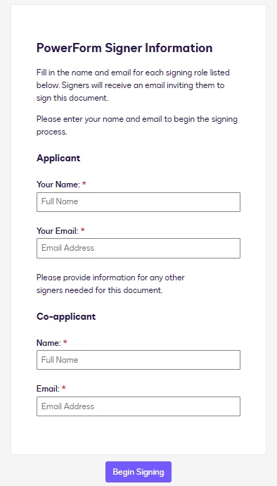 Now the issue arises when we use the power form, the first person (say applicant) can start the application by filling out his/her name and email as they are marked mandatory. Coapplicant information (name and email) often times are missed as there is not a clear indication that the fields are required for applicant to fill in the same way they fill in the name and email section of the applicant portion.