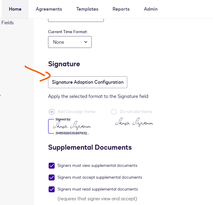 From Admin > Signing settings > under Signature, you should find the Signature Adoption Configuration.