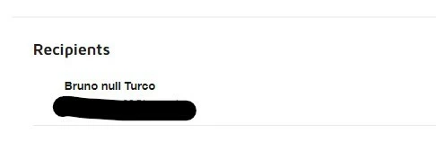 User’s name is misspelled because a “ null ” is appearing between first name and family name:
