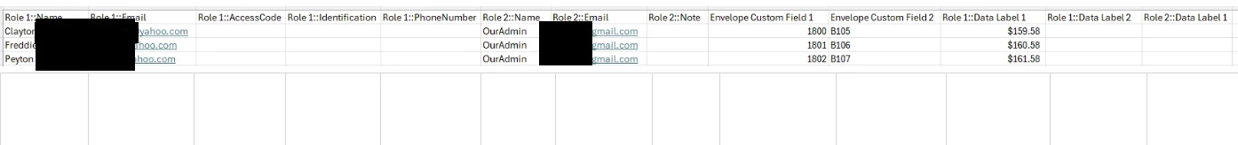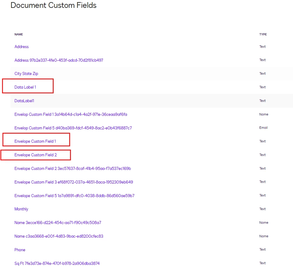 My custom fields are not being recognized when starting an envelope, then opening the template, and selecting the csv below. When I download a sample csv, it doesn’t have most of the custom fields that have been created.