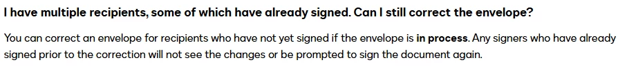 It is not fully clear to me which corrections I can make to an envelope without having signers resign the envelope.