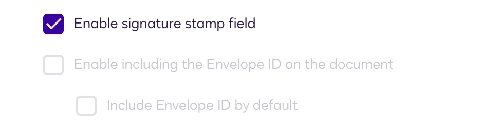 The settings “Enable including the Envelope ID on the document” controls whether senders can choose to include the Envelope ID stamp on documents. However, if the setting is unchecked and grayed out, it means the sender cannot disable the envelope ID stamp -- it will always appear on the document, and the sender has no control over it. If the settings is checked, then the sender has the option to control the envelope ID stamp on each envelope by going to Advanced Options > Sender Settings when creating an envelope, choosing whether to include or exclude the envelope ID stamp for that specific envelope.