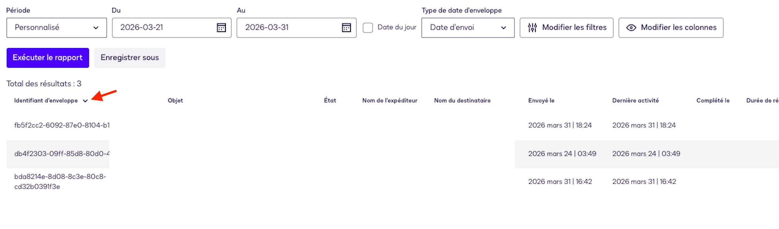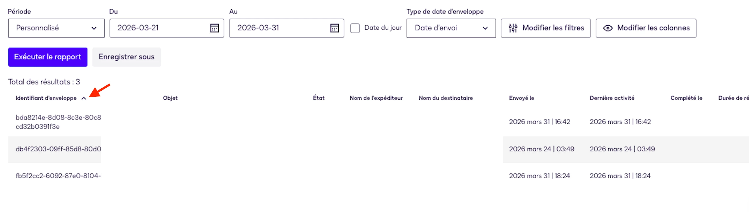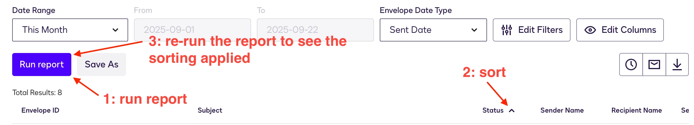 When you click on the column, sorting starts automatically. It's not at all intuitive to have to click somewhere else (Run report). At the very least, the end user should be informed with a pop-up or a small message that appears.