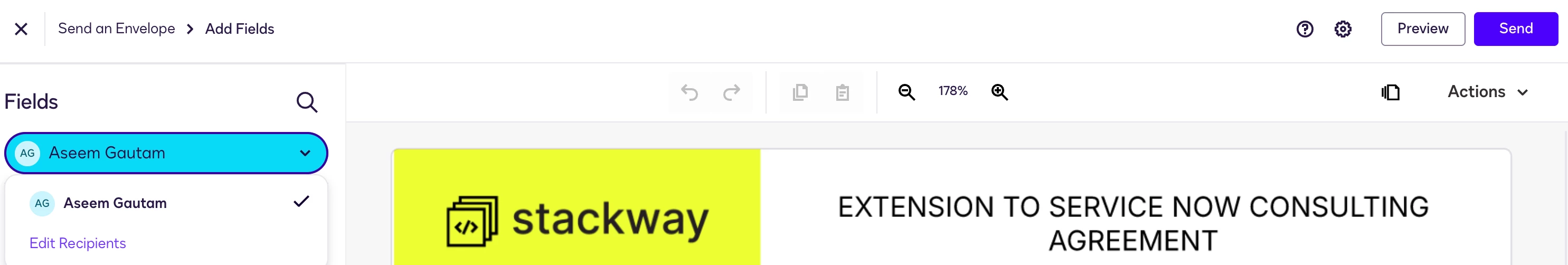 You can see in the below image, I am the only signer & the button on top right says ‘send’. Earlier I was able to sign & there was no option to send. If I press send, one credit is removed from my account. This seems like a major shift to deducting credits on self signing envelopes, rather than a bug or some issue related to settings etc.