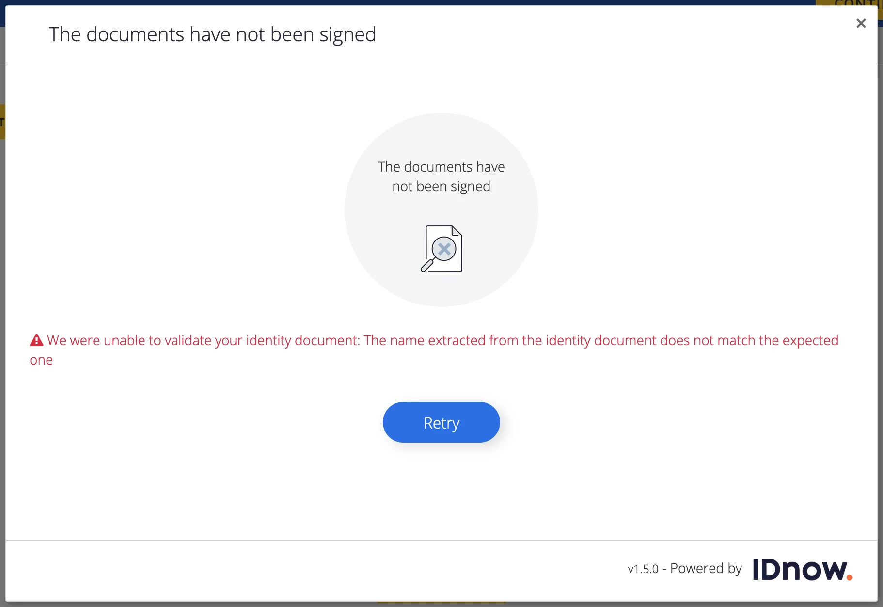 Either way, I can confirm my ID (passport) and get a success message, but when returning to DocuSign from the IDnow-window I get an error message saying that the name on my ID and the document doesn’t match.