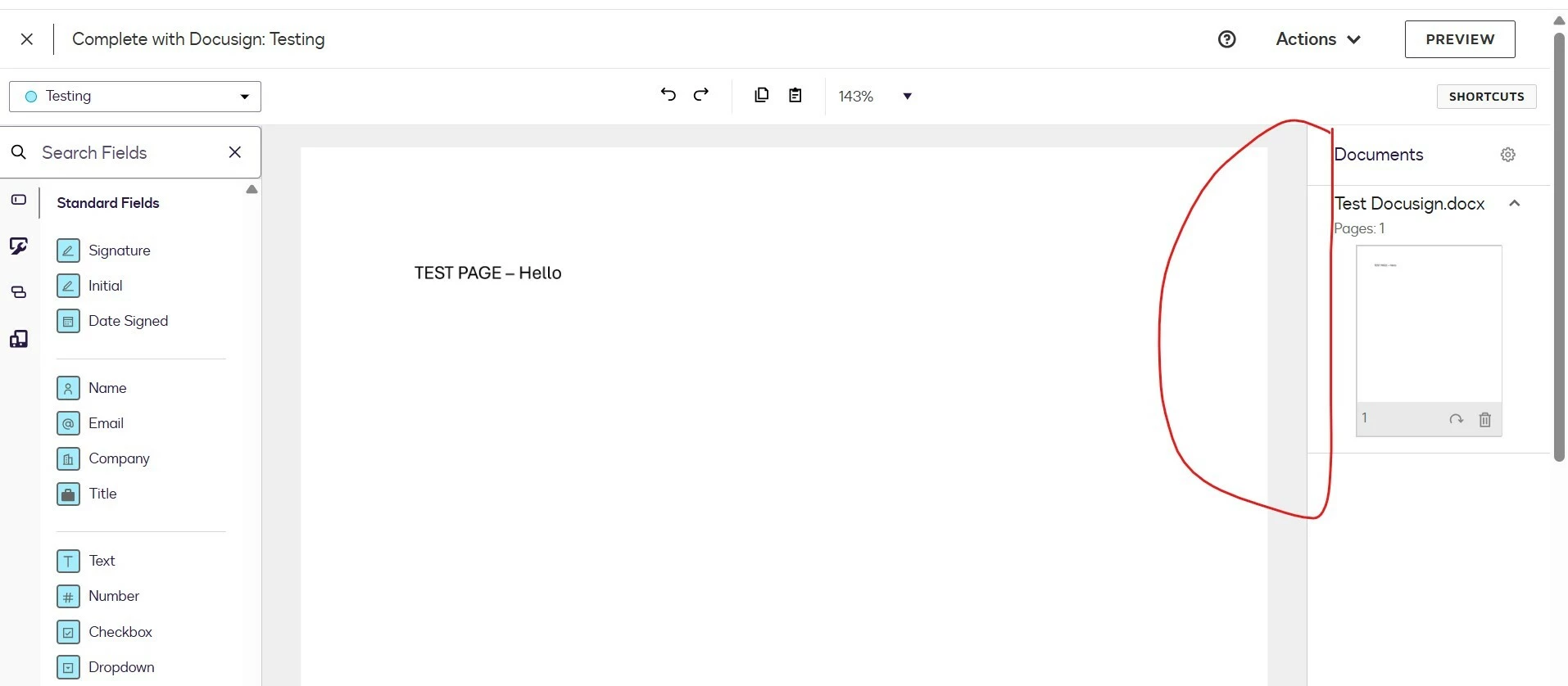 When you click on the scroll bar to move down the document, the standard fields on the right hand side will stay so you can drag the relevant to the document. Since last week, it suddenly went missing. I have logged a ticket with the Docusign Engineering team yesterday to resolve this bug and I have not heard anything yet.