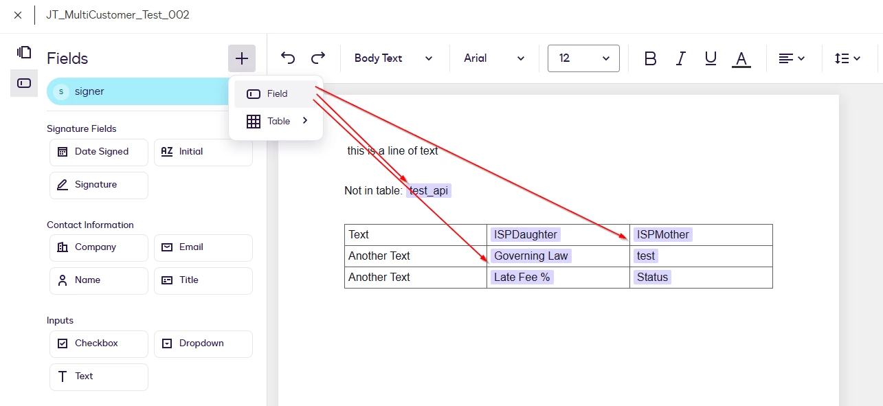 - This template should contain “variables” that needs to be pre-filled before sending out to the signee (e. g. a Customer ID or Name)