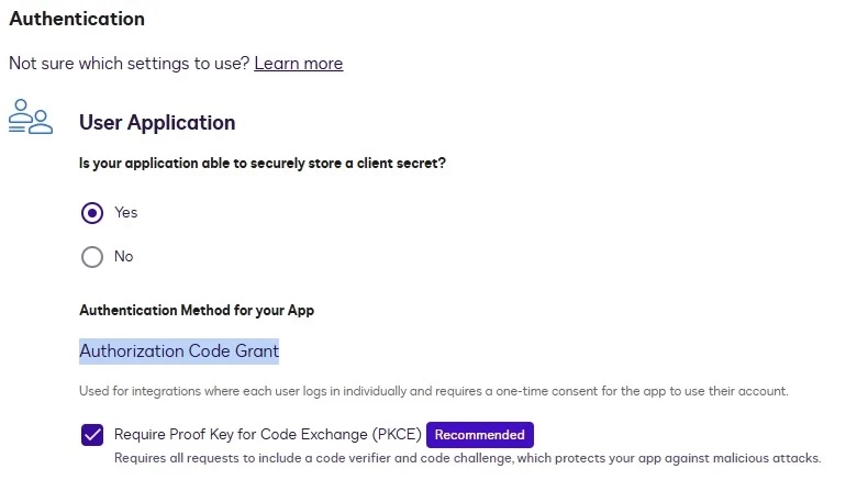 Answer: Although this UI does not explicitly mention JWT authentication, you can set JWT authentication by selecting Yes under Is your application able to securely store a client secret. Then add an RSA key pair in the Service Integration section. Do not check the Require Proof Key for Code Exchange (PKCE) option.