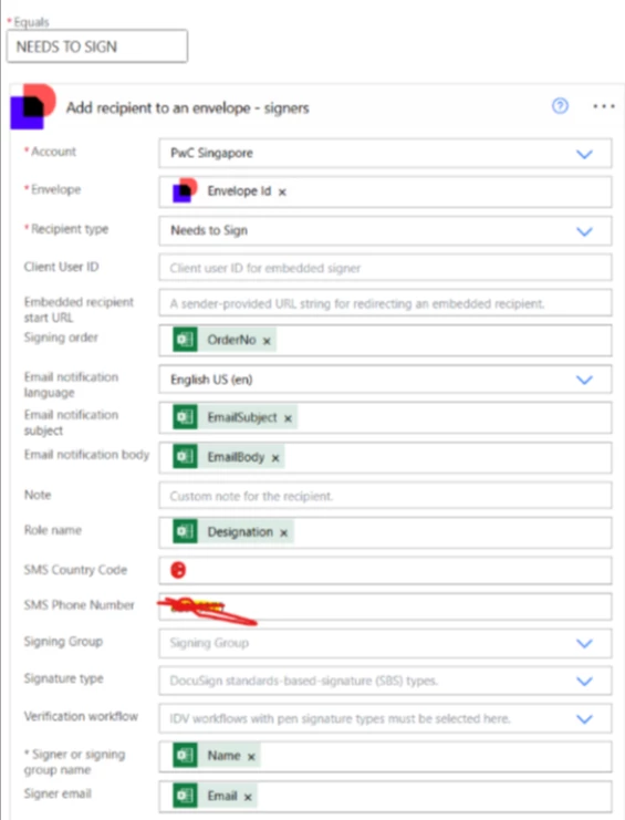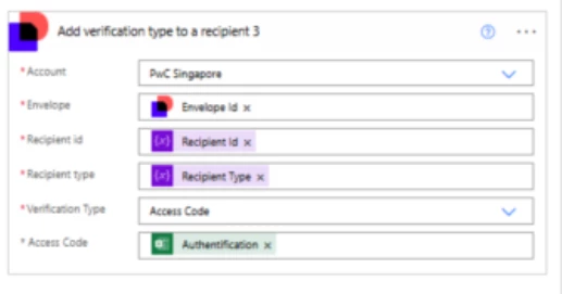 I am using the add verification type to a recipient(v2) action using the DocuSign Connector.