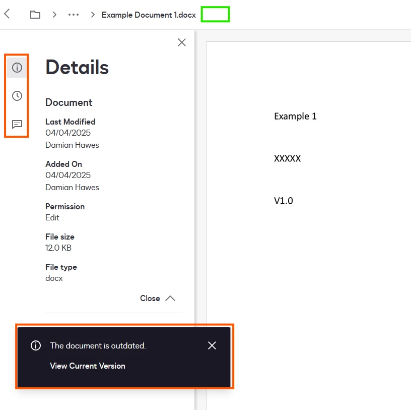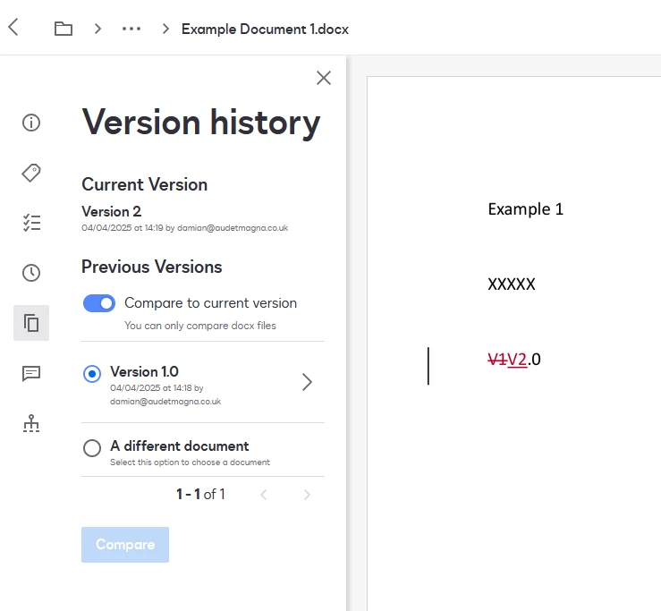 E.g. This is my preview of V2.0 of a test document (redlines shown)
