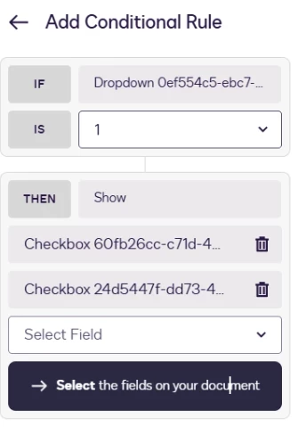 Using a drop down in a template, I would like to be able to enable/disable checkboxes in a group. There are multiple strategies in my dropdown list which would enable a single checkbox in another section. We currently only allow a 1-to-1 relationship.