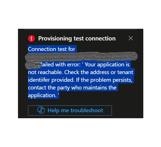 We are trying to setup SCIM connector for DocuSign in Entra for user provisioning and de-provisioning however when while testing the ‘connection after copying the relevant into (Base/tenant URL and token) to Entra, the test connection is failed with error “Your application is not reachable” (reference snip attached).
