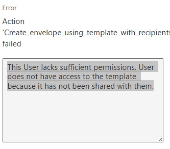 I was not changing anything in Power Automate at all. It just stopped working. I do not have access to the subscription admin panel, but I can guide our administrator to verify what’s wrong. What should I do? What’s the issue? Templates are shared with the account what is being used to send the documents and were before. I can see them during the action configuration, but I can’t use them any longer.