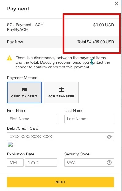 Even after I verify the account information (the customer sent me the 2 microdeposit amounts), when she goes back to the document to pay, there’s an error since there’s no payment amount - see the attached discrepency.